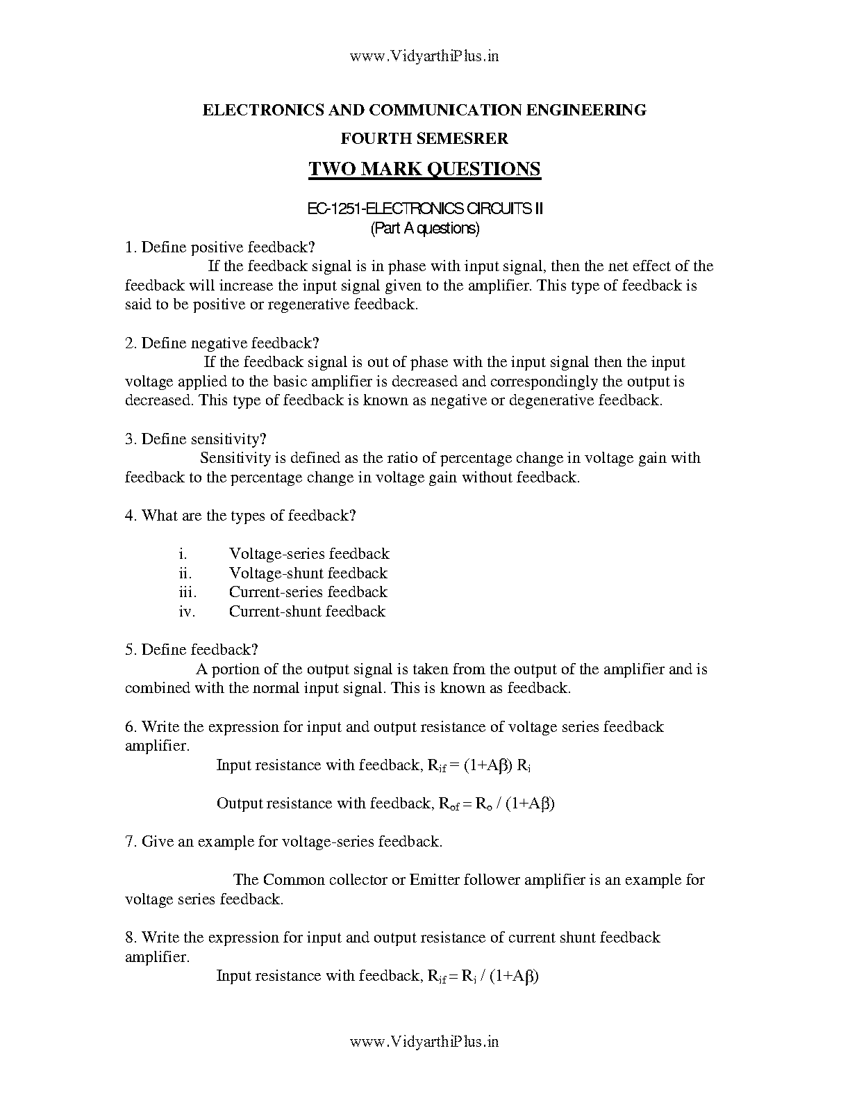 Electronic circuits 2 important questions ec8452 pdf free download.